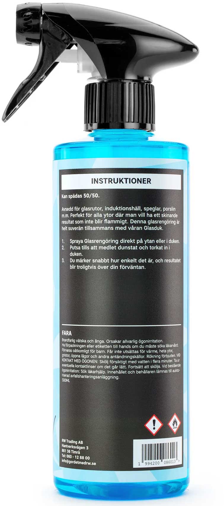 Denna glasrengöring är avsedd för en enda sak. Att göra det väldigt enkelt för dig som användare att rengöra vindrutan, glas, speglar, keramikhällar m.m. Produkten lämnar inga streck efter sig vilket gör att resultatet blir skinan de blankt. Kan användas på alla typer av glas, både invändigt och utvändigt.