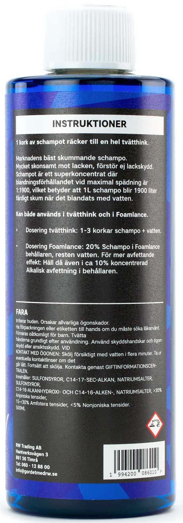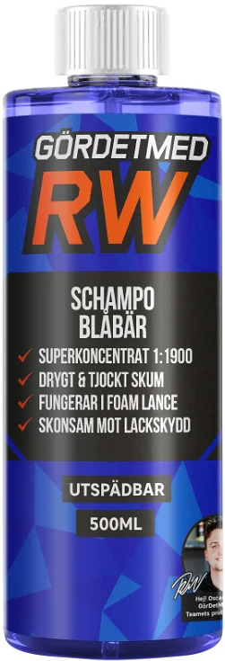 En av marknadens bäst skummande Schampo som räcker till många tvättar. Detta schampo ger ett brutalt tjockt & rengörande skum. Medlet är högkoncentrerat vilket innebär att du endast behöver ytterst lite schampo för att få ett bra skum. Droppa i några korkar i en tvätthink, fyll på med vatten och du kommer att få se en skum-explosion. Produkten har en härlig doft av Blåbär |
