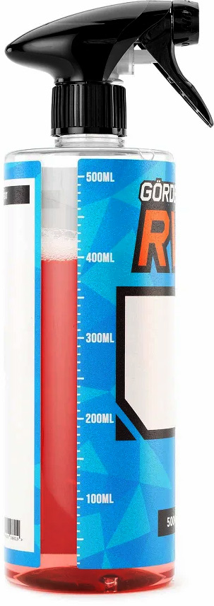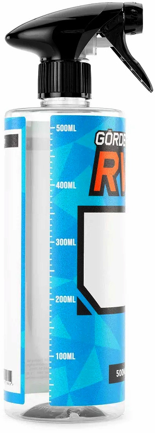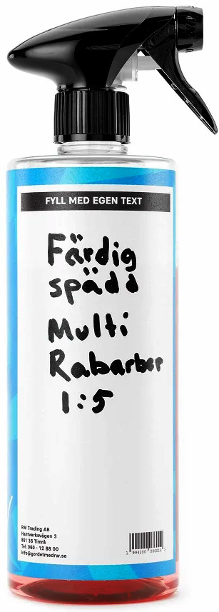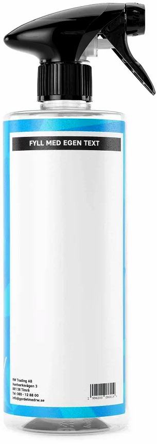 RW Tomflaska 0,5 liter Blå med spray-trigger och mått-tabell. Perfekt för att blanda ut utspädningsbara produkter. Pris för 1 styck