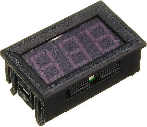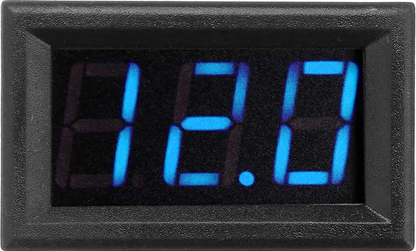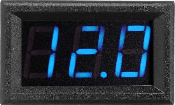 Voltmätare 9-24 Volt. Fuktskyddad. Blåsplay. Mycket smidiga mått och hög kvalite. Monteringshål 26x48 mm, djup 22mm.