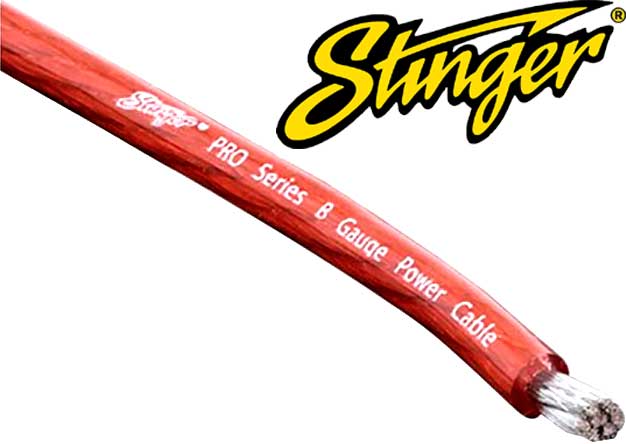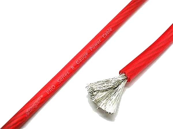 SPW18TR Stinger 10 mm² strömkabel 100% OFC koppar. Förtennade kardeler ger hög motståndskraft mot fukt. Högsta möjliga strömflöde! Matt Röd. Pris för en meter