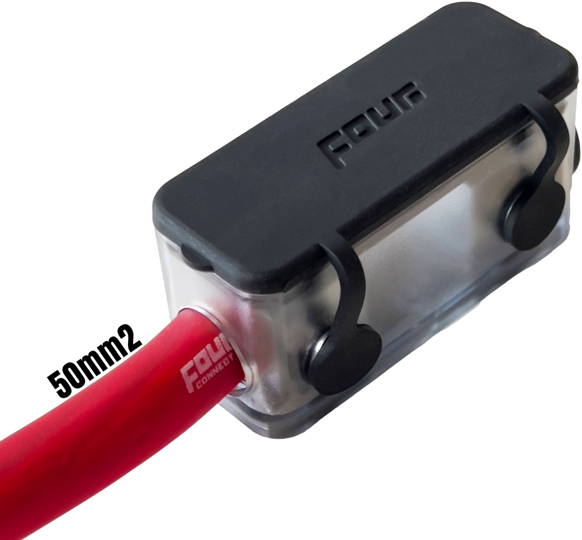 Det går även att använda 50mm² kablar genom att ta bort tätningsringarna från hållaren. Obs! produkten är inte längre vattentät efter detta.