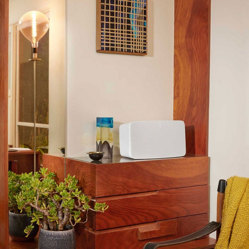 FIVE kan placeras var som helst och trådlöst leverera musik till valfritt rum i ditt hem. Spelare och controller skapar ett eget säkert, trådlöst mesh-nätverk som levererar den räckvidd och prestanda som behövs för att spela musik i hela huset.