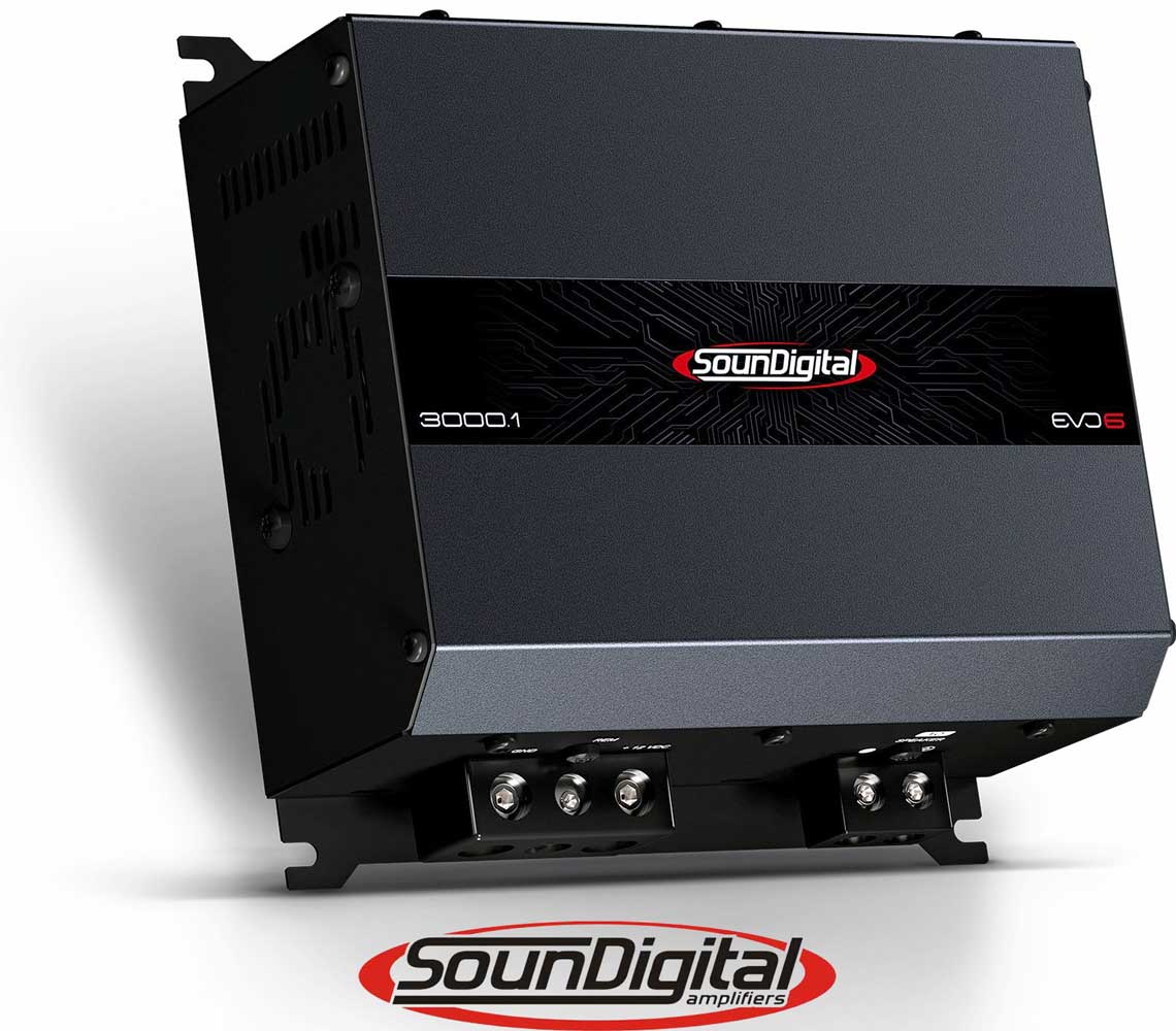 SounDigital 3000.1 EVO 6 - 2Ω 1x3000W 12,6V Fullregister steg för subbas & midbas system