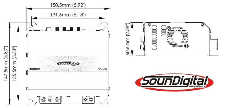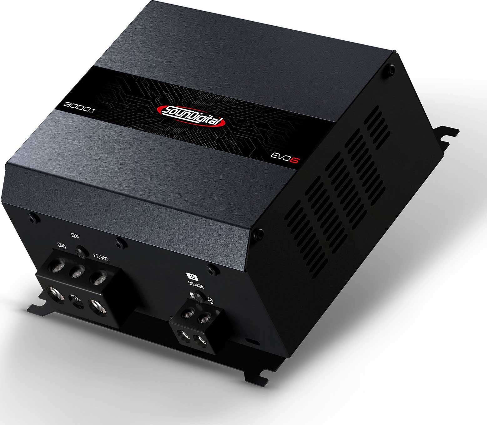 SounDigital 3000.1 EVO 6 - 2Ω Fullregister Monoblock. 1x3000W 12,6V 1% THD. Delningsfilter optimerad för subbas. Kan kopplas till fullregister system eller mellanbas system. Mycket kompakt storlek 150x147,5x60,6 mm. Fläktkyld. Pris för 1 styck.
