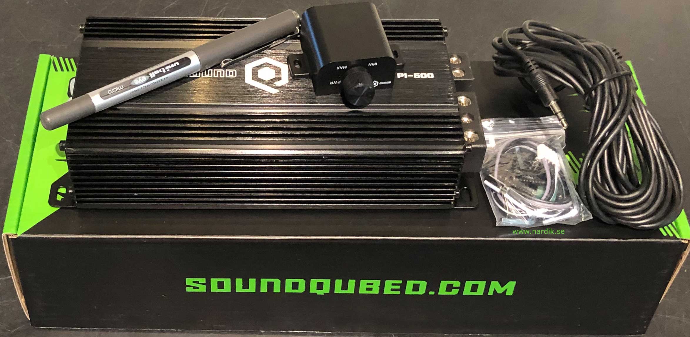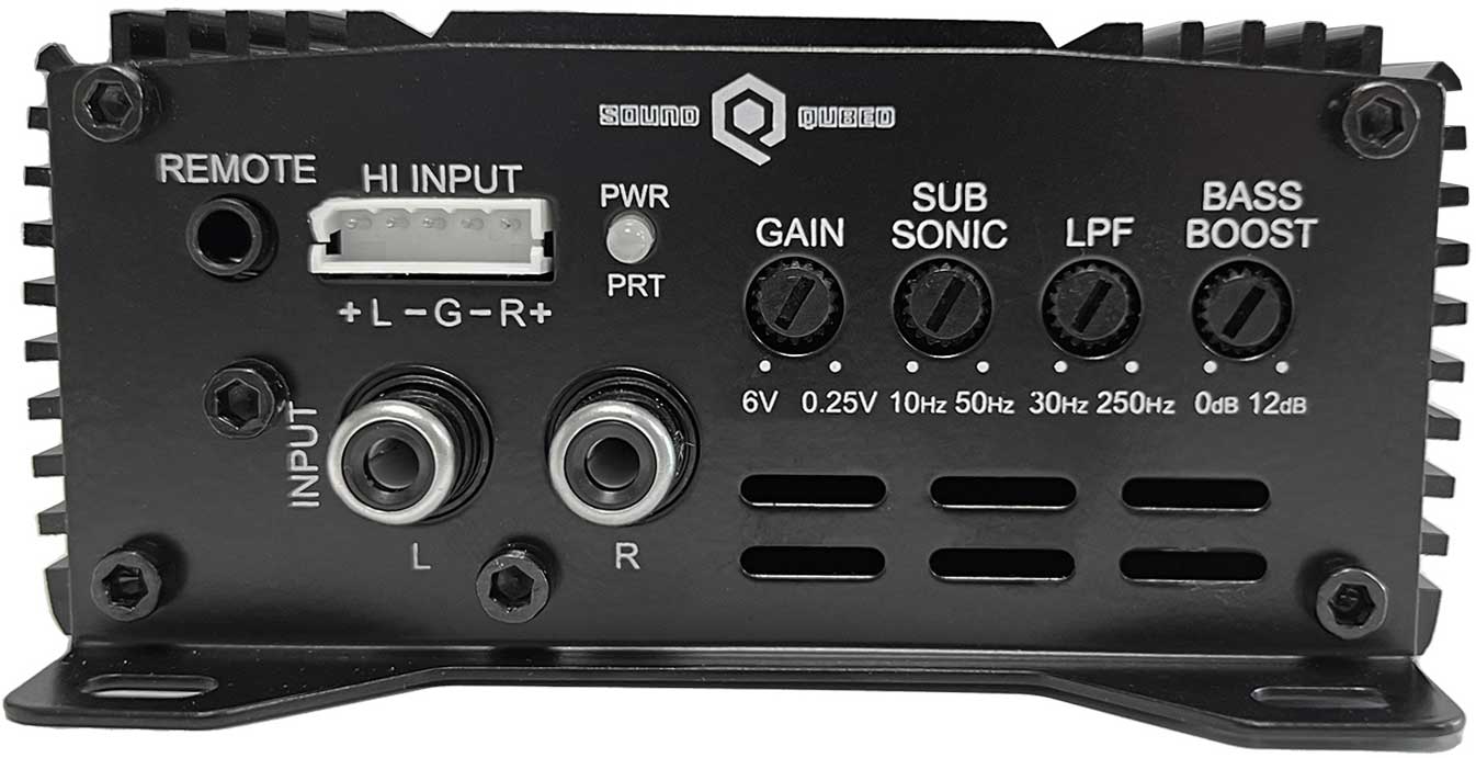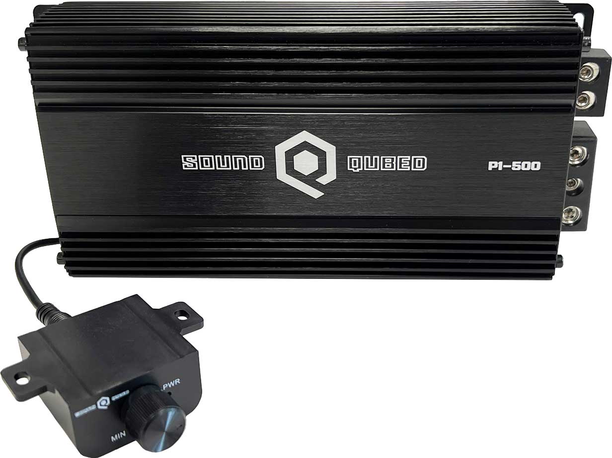 SoundQubed P1-500 Mycket kompakt Digitalt Monoblock 500W RMS 1Ω, 1000W max 1Ω. Lågpass & Subsonic filter. Fjärrkontroll. Högnivåingång. Rejäla anslutningar. Pris för 1 styck