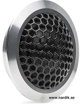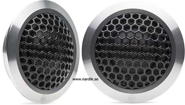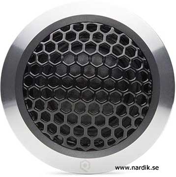 Har neutral och ofärgad diskant. QS-SD25 är en äkya kantdrivna 1" Siden dome, W konstruktionen med har stor effekttålighet och bra spridning. Stabil Aluminium hus med kraftig Neodymium magnet. Monteras infälld. Monteringsring av Aluminium.