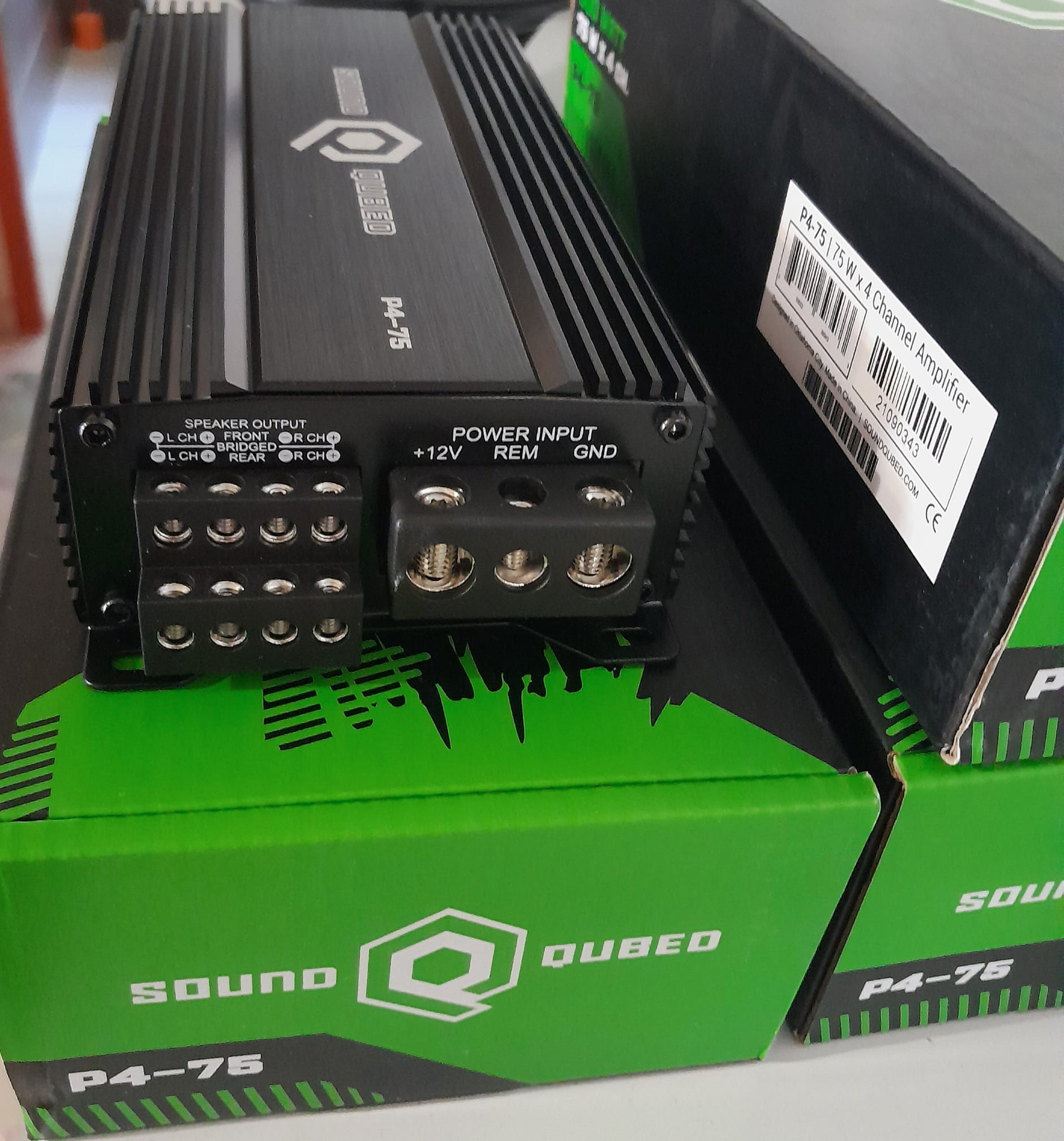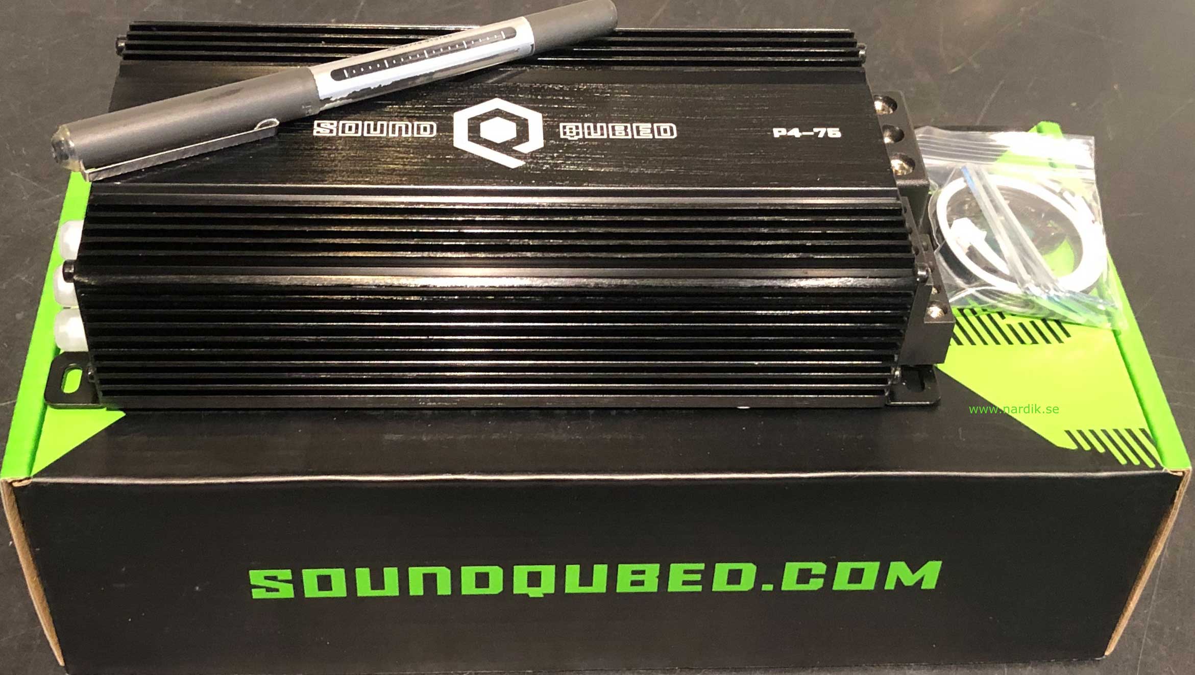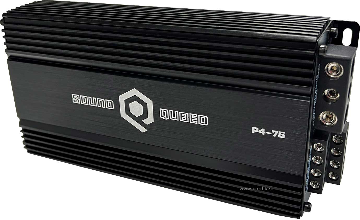 SoundQubed P4-75 Kompakt 4 kanaligt slutsteg. 4x65/2x120 Watt RMS 600 Watt max Ställbara dubbla hög & lågpass filter. Högnivåingång. Rejäla anslutningar. Pris för 1 styck