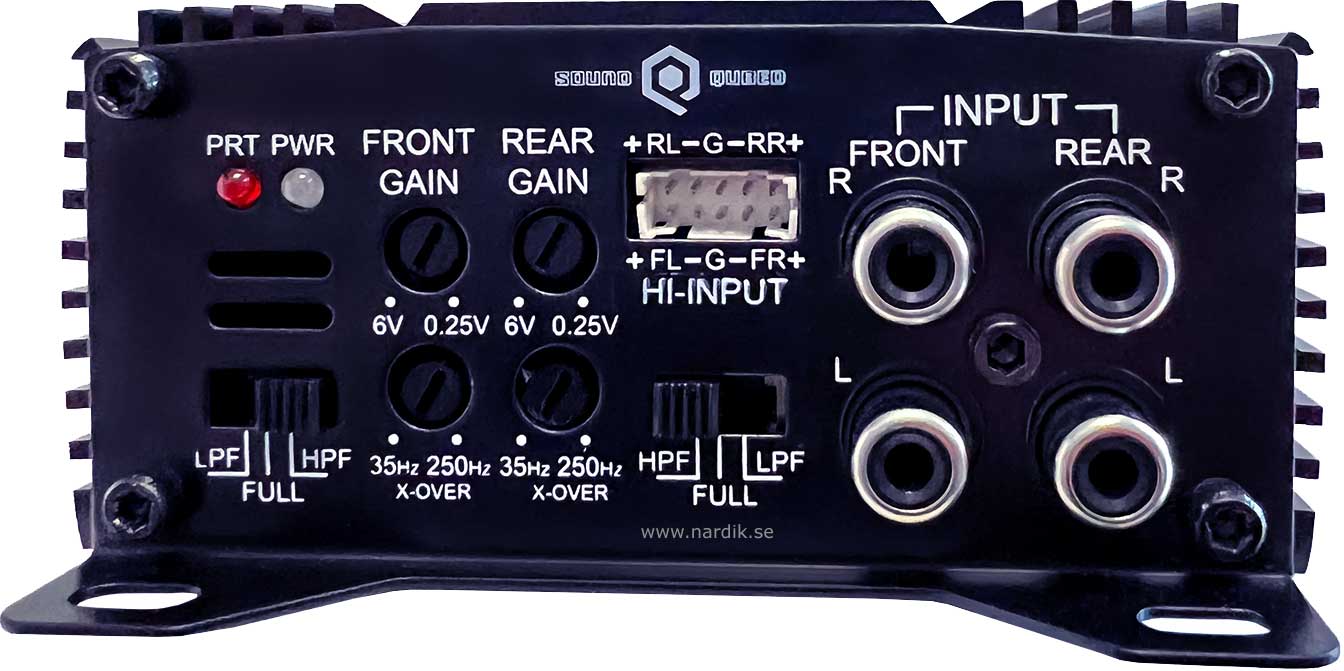 SoundQubed slutsteg 4 kanaler 600 Watt max Hög & lågpass filter Högnivåingång