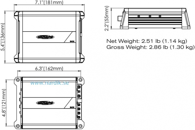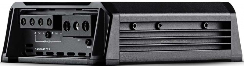 Soundigital 1200.2 EVOX 2Ω med 2 kanaler. Extremely high sound quality 2 x 669 Watt RMS 0,1% Thd 14,4 Volt 1Ω, 1 x 1338 Watt RMS 0,1% Thd 14,4 Volt 2Ω. Hög & lågpassfilter. Lågnivå och högnivåingång. Mått 246x181x53mm. Pris för 1 styck