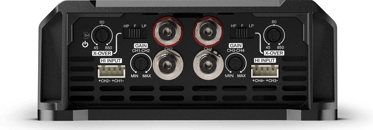 Soundigital SD1200.4-2 EVOX2 2 Ohm Kompakt Hifi steg som levererar 1200 Watt (12,6 Volt) fördelat på 4 kanaler. Ställbara hög & lågpassfilter. Högnivåingång med autostart. Mått 136x182x55 mm! Pris för 1 styck