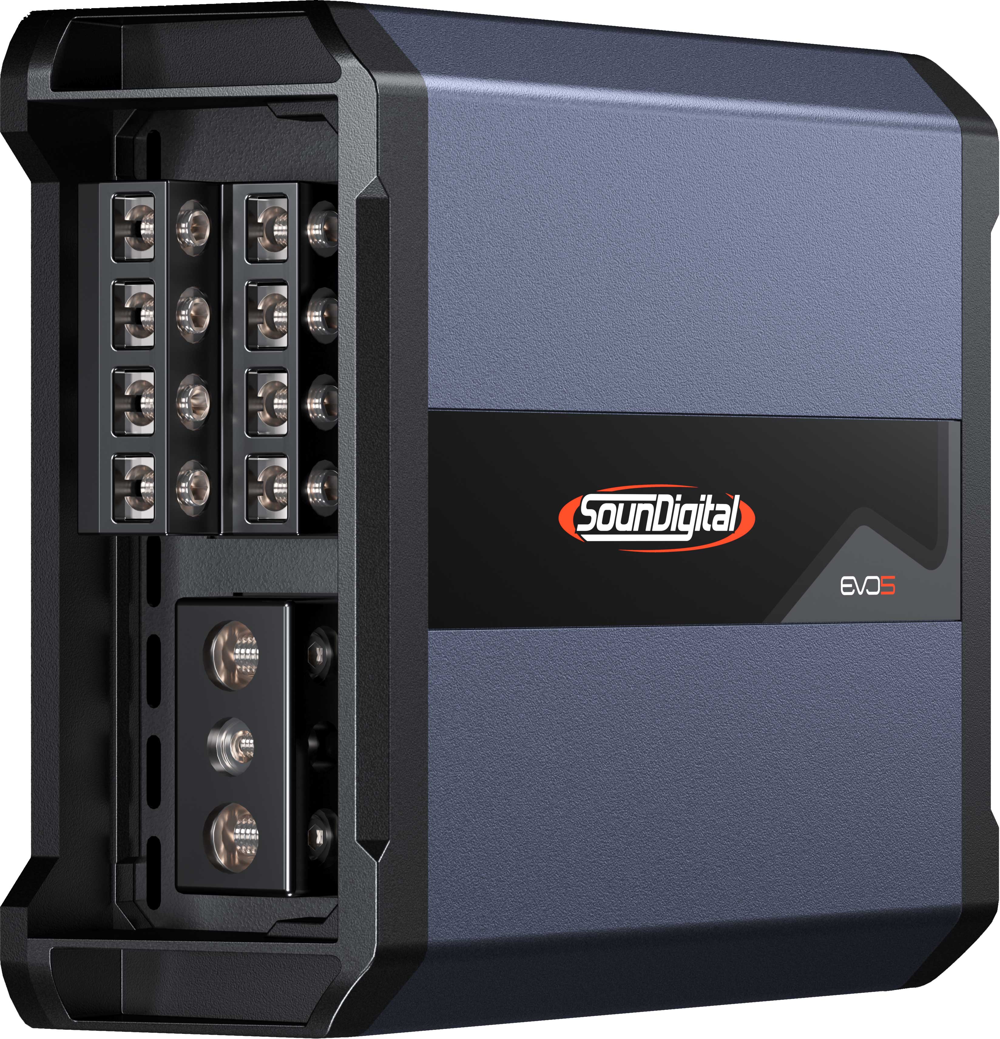 Soundigital 1200.4 EVO5 2Ohm Generation 5 Ultrakompakt steg med 4 kanaler. 4x300W 1Ω, 2x600W 2Ω. Hög & lågpassfilter. Mått 121x170x55 mm. Pris för 1 styck