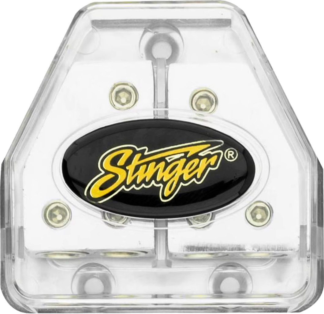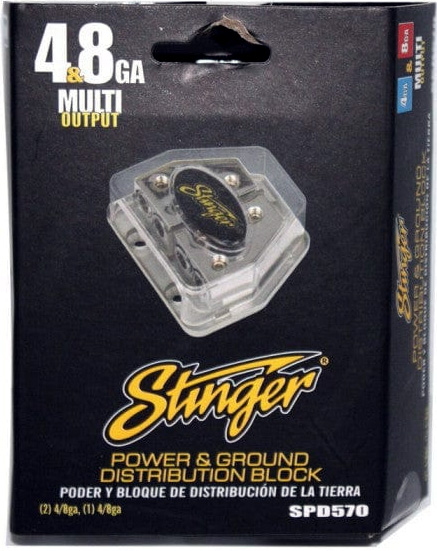 Stinger SPD 570 smarta dubbelblock.2 block i ett chassi. Kan användas till plus & minus kablar 8-25 mm². varje del har 3st 8-25mm2 ut. Pris för 1 styck