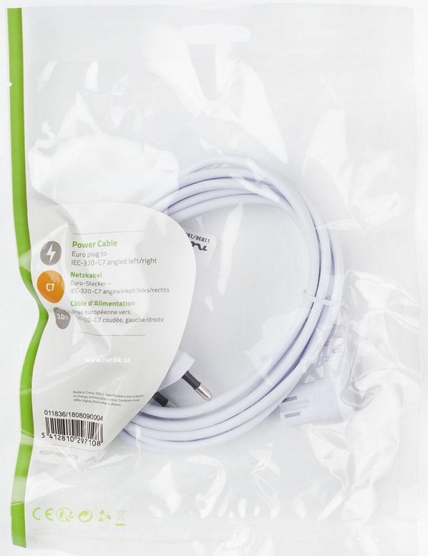 Nedis 2 meter strömkabel för SONOS PLAY:1 och SONOS ONE eller andra installationer där vinklade kontakter behövs. Hög kvalité. Ledare 2x 0.75 mm² Koppar med minimala förluster. Vinklad kontakt.