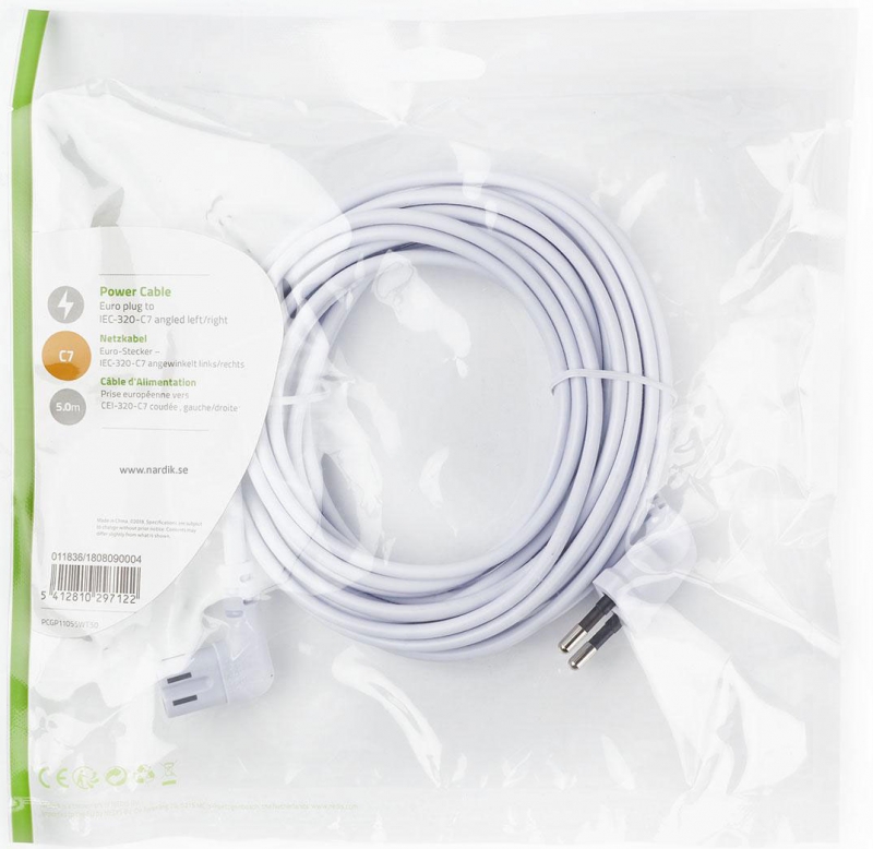 Nedis 5 meter strömkabel för SONOS PLAY:1 och SONOS ONE eller andra installationer där vinklade kontakter behövs. Hög kvalité. Ledare 2x 0.75 mm² Koppar med minimala förluster. Vinklad kontakt.