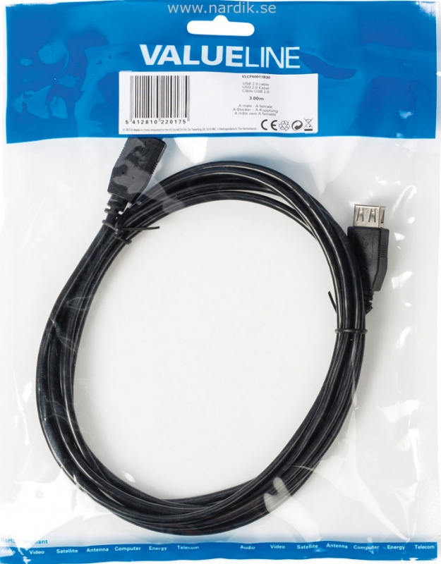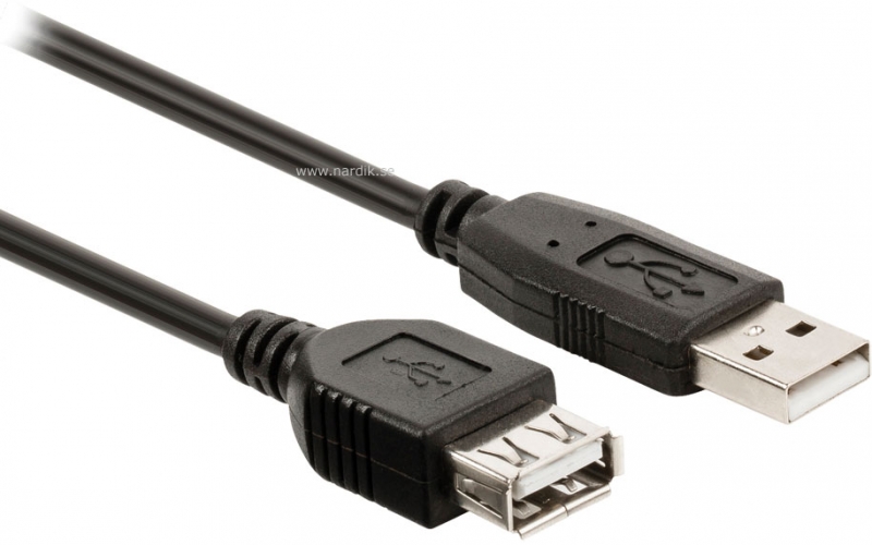 USB 2.0, förlängnings kabel USB-kabel (en USB-A han kontakt och en USB-A hon kontakt) med en max-överföring på 480Mbps. Gjutna kontakter . Längd 3 meter. Pris för 1 styck.