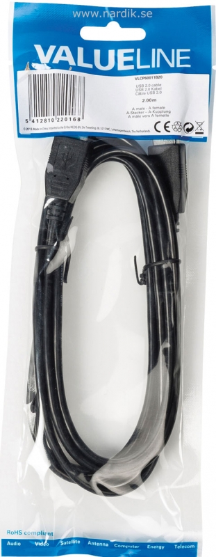 USB 2.0, förlängnings kabel USB-kabel (en USB-A han kontakt och en USB-A hon kontakt) med en max-överföring på 480Mbps. Gjutna kontakter. Längd 2 meter. Pris för 1 styck.