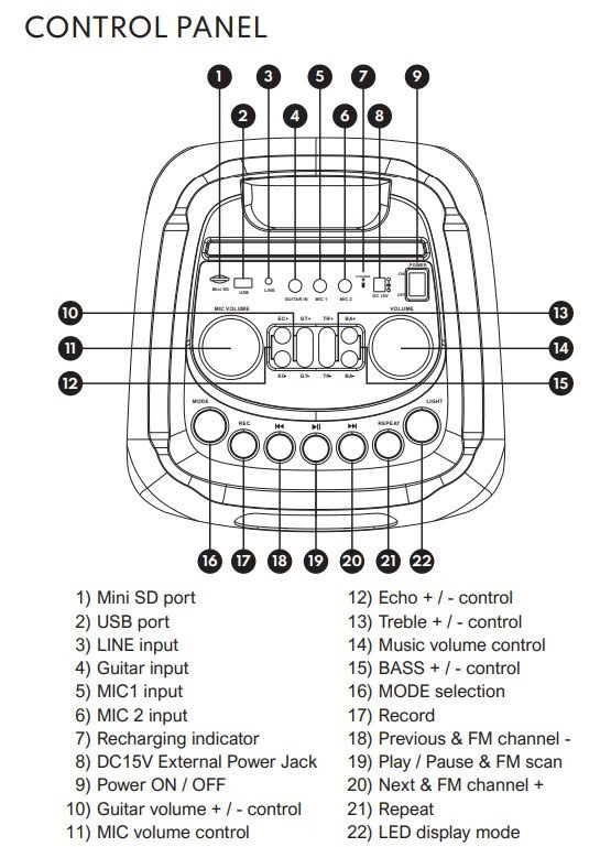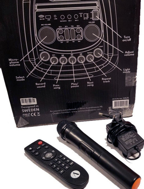 - Trådlös mikrofon och fjärrkontroll medföljer