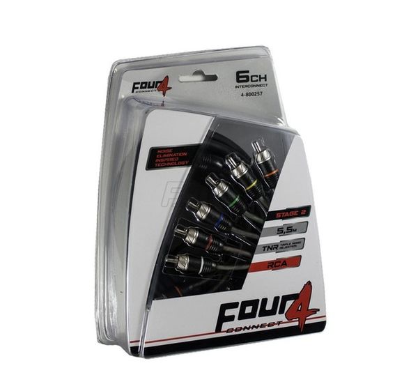 4Connect STAGE2 RCA-kablar är noggrant utformade för att ge bästa möjliga resultat. Dessa kablar har tjockare ledare än vanligt och är tillverkade av förtent OFC (T-OFC). Trippelskärmad Twisted Pair-struktur eliminerar oönskat brus. En annan bruseliminerande faktor är en extra tråd som finns inuti alla kablar. Ledarna är också täckta med folie för att förhindra induktivt brus. Ledarna är isolerade med material som används i högspänningskablar. Denna struktur ger otroligt bra brusreducering vilket är särskilt viktigt i bilmiljö. Kontakterna är rodiumpläterade Bite Hold Molded Connectors (BHMC) och varje kontakt testas i fabrik för att säkerställa utmärkt grepp. Kontakthusen är tillverkade av HDPE-plast som har hög isoleringsfaktor. Husen har motsatt konstruktur som fungerar som dragavlastning för kabeln. Yttre extra tråd kan användas som en fjärrledning eller brusreducerande jordledning.