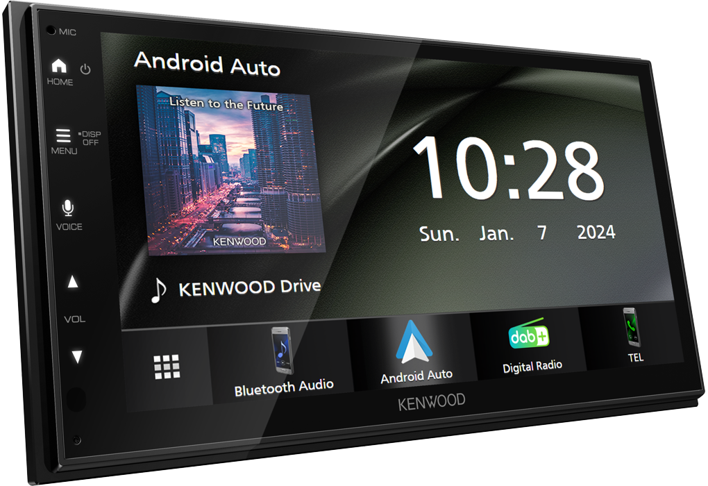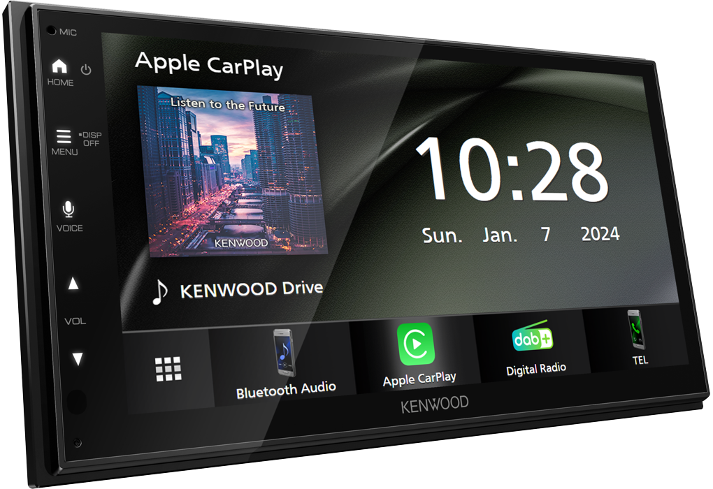 6,8-tums WSVGA-skärm. Fungerar via USB med Apple CarPlay®/Android Auto™. USB-skärmspegling för iPhone och Android-smartphone. Inbyggd DAB+ digitalradiomottagare. Optimal ljudprestanda med 13-bands grafisk EQ och tidsjustering. Spela upp ljud- och videofiler komprimerade i olika format från USB-enheter. Backkameraingång med parkeringshjälpmedel.