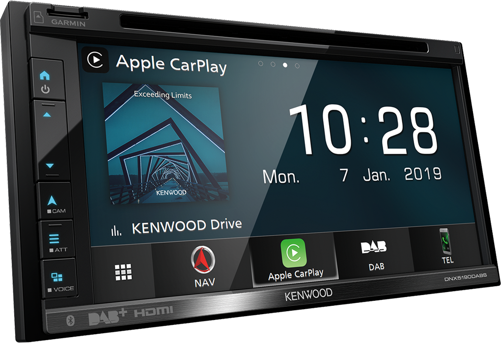 6,8-tums WVGA-skärm. Avancerad navigering från Garmin. Säker, smart och omfattande kontroll med Apple CarPlay och Android Auto. Styr mottagaren från din smartphone med KENWOOD Remote-appen S. Optimal ljudprestanda med 13-bands grafisk EQ och tidsjustering. 3 högnivå-pre-utgångar. HDMI- och 3 kameraingångar. Klar för Dash Cam Link. Spela upp ljud- och videofiler komprimerade i olika format från CD-/DVD-/USB-enheter. DAB+-mottagare.