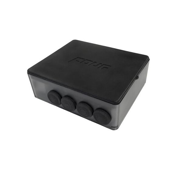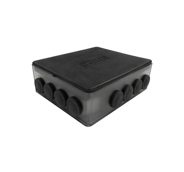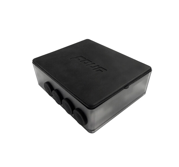 Säkringsdosan har ett öppningsbart lock av flexibelt gummi, vilket gör säkringsbyten enkelt och snabbt. Ramen är tillverkad av väderbeständig plast och du kan fästa den genom att skruva fast den med hjälp av hålen i basen.