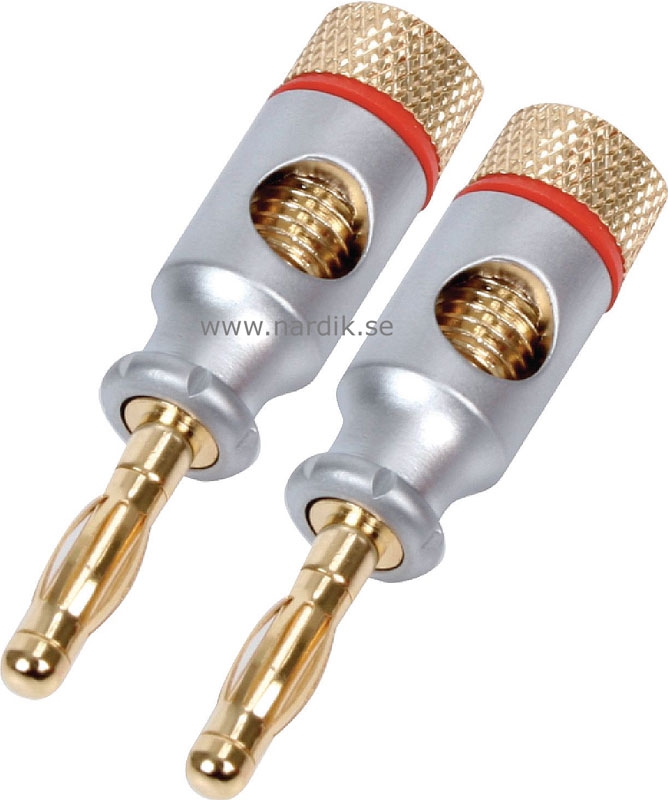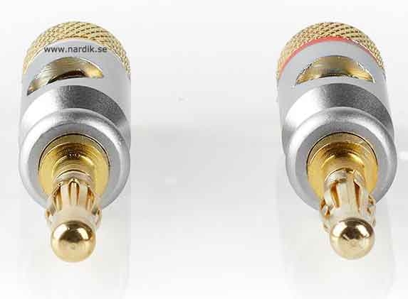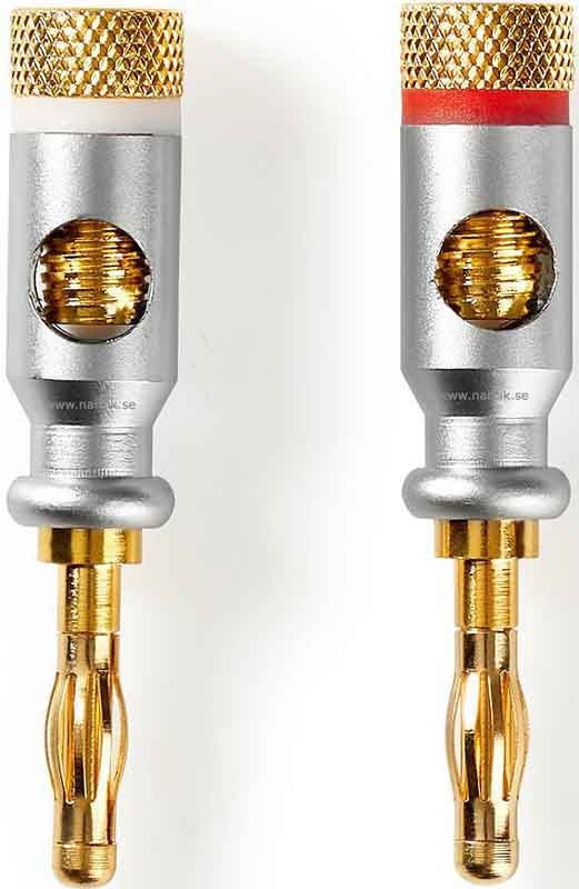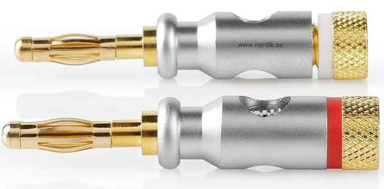 Nedis banan hankontakt. Guldpläterade kontaktytor med skruvanslutning. För kabel upp till 6 mm². Rejäl kontakt gjord helt i metall. Påbyggbar med fler banankontakter. Pris för 2 styck